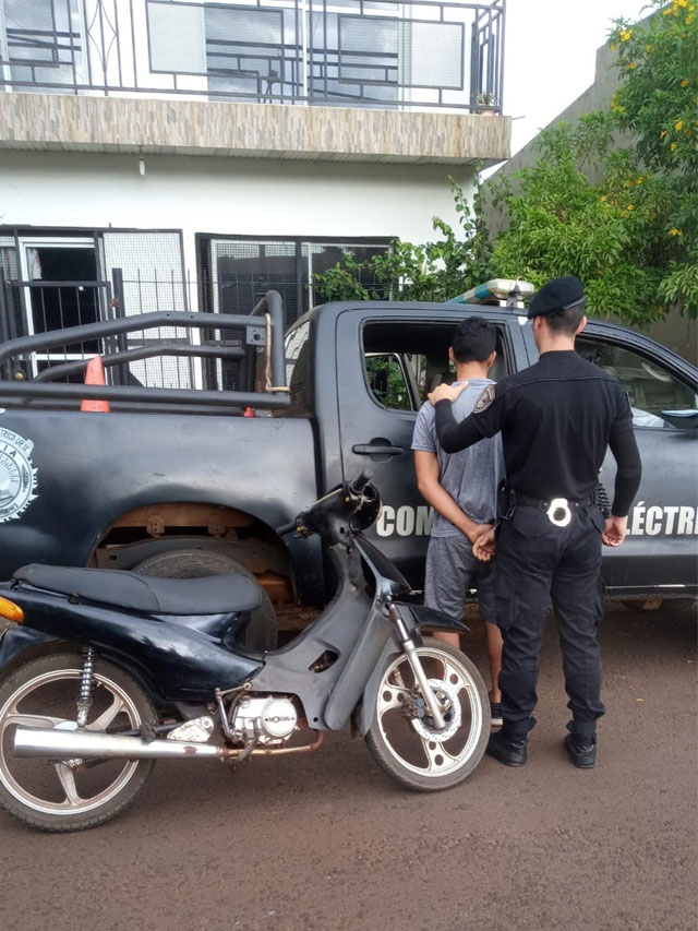 Por último, en Jardín América, cerca de las 09:30 horas del mismo martes, en la intersección de calles Surinam y Cuba, fue aprehendido F. Brian Ezequiel (27). El joven intentó evadir un control policial a bordo de una motocicleta Mundial 110cc, pero fue interceptado a pocos metros. El rodado fue retenido por infracción a la Ley Nacional de Tránsito y el implicado quedó alojado en la Comisaría Seccional Primera.