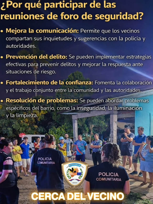AGENCIA MISIONES.UNO | La Dirección de Policía Comunitaria de la Policía de Misiones promueve la participación ciudadana en los foros de seguridad como herramienta para fortalecer la prevención del delito y el trabajo conjunto con los vecinos.