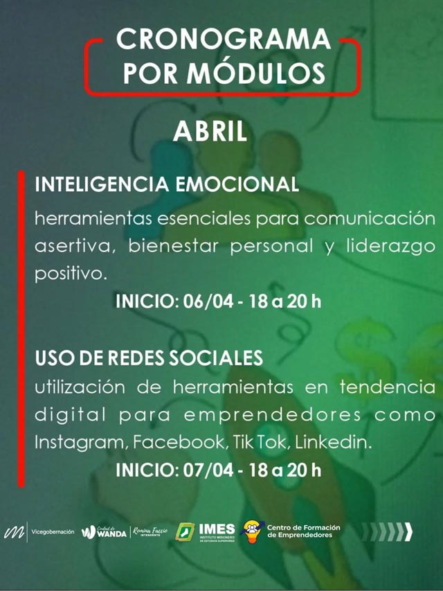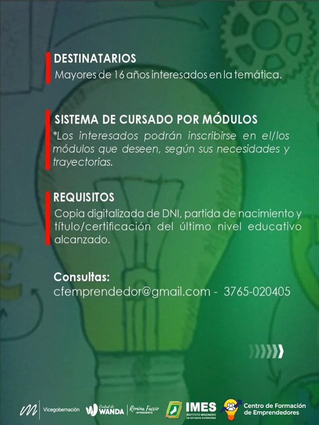 En la localidad de Wanda se encuentra abierta la inscripción a una capacitación gratuita destinada a emprendedores y personas con ideas de negocio que deseen transformarlas en proyectos concretos. La iniciativa es impulsada por la Vicegobernación de Misiones, a través del Centro de Formación de Emprendedores (CEFOEM) y el Instituto Misionero de Estudios Superiores (IMES).