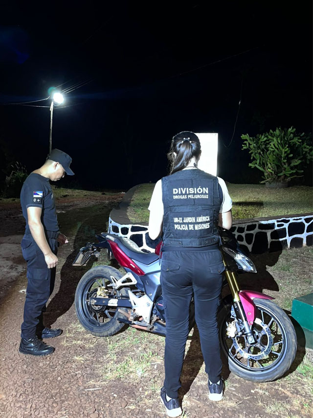 MISIONES.UNO – En Hipólito Yrigoyen, efectivos de la División Drogas de la Policía de Misiones secuestraron una motocicleta Honda CB 190 durante un control vial realizado en la avenida Belgrano, al constatarse irregularidades en la documentación y en el dominio del rodado.