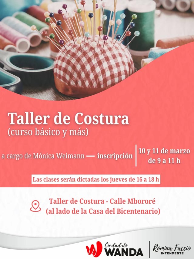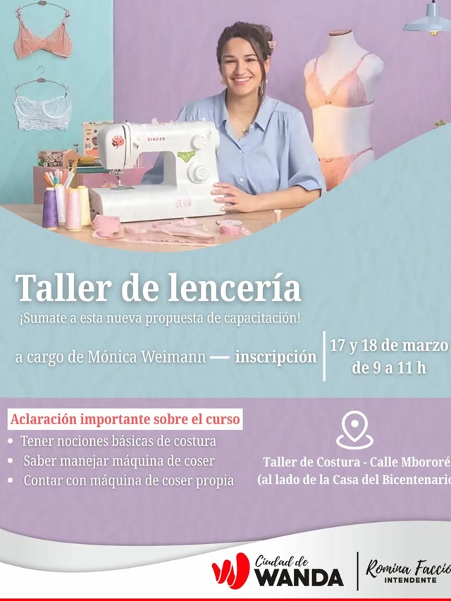 AGENCIA MISIONES.UNO | El municipio de Wanda anunció la apertura de inscripciones para los talleres de costura y lencería, una propuesta de capacitación destinada a vecinos interesados en aprender y desarrollar habilidades vinculadas a la confección de prendas.
