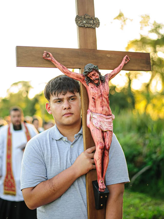 La comunidad de Wanda vivió este viernes una emotiva jornada con la realización del tradicional Vía Crucis, una de las expresiones más significativas de la Semana Santa, que convocó a numerosos vecinos.