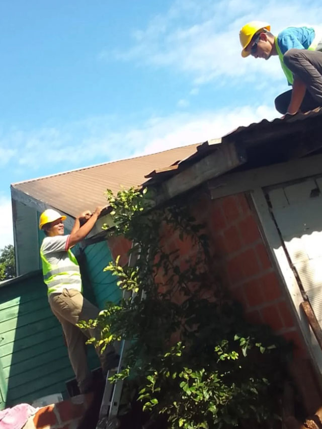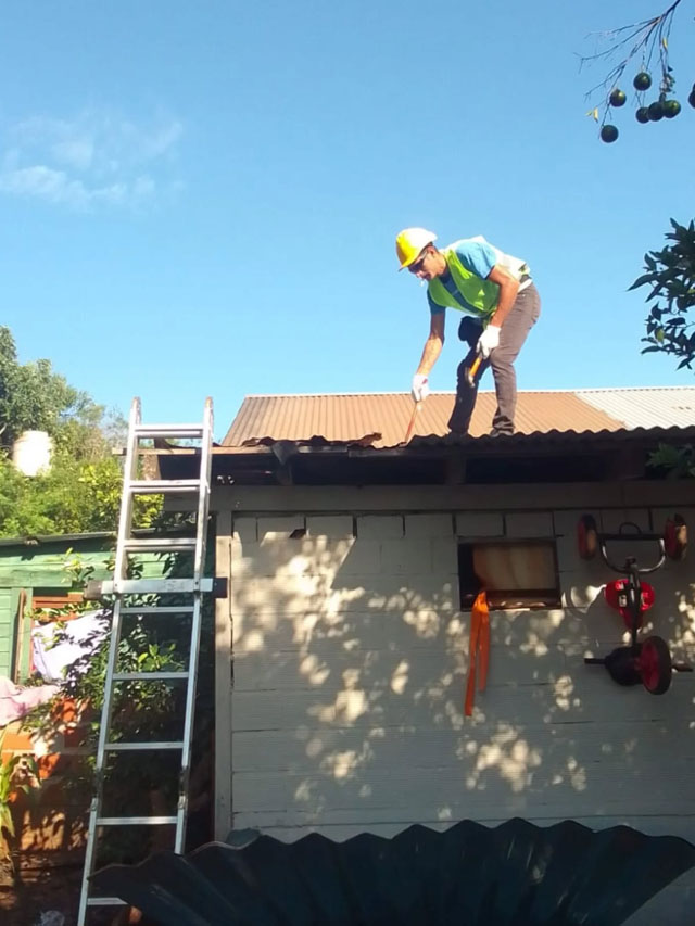 Los trabajos incluyeron la reparación de tres chapas del techo, lo que permitió restablecer las condiciones de seguridad y habitabilidad del inmueble. La intervención se realizó con el objetivo de brindar una respuesta concreta a la familia afectada.